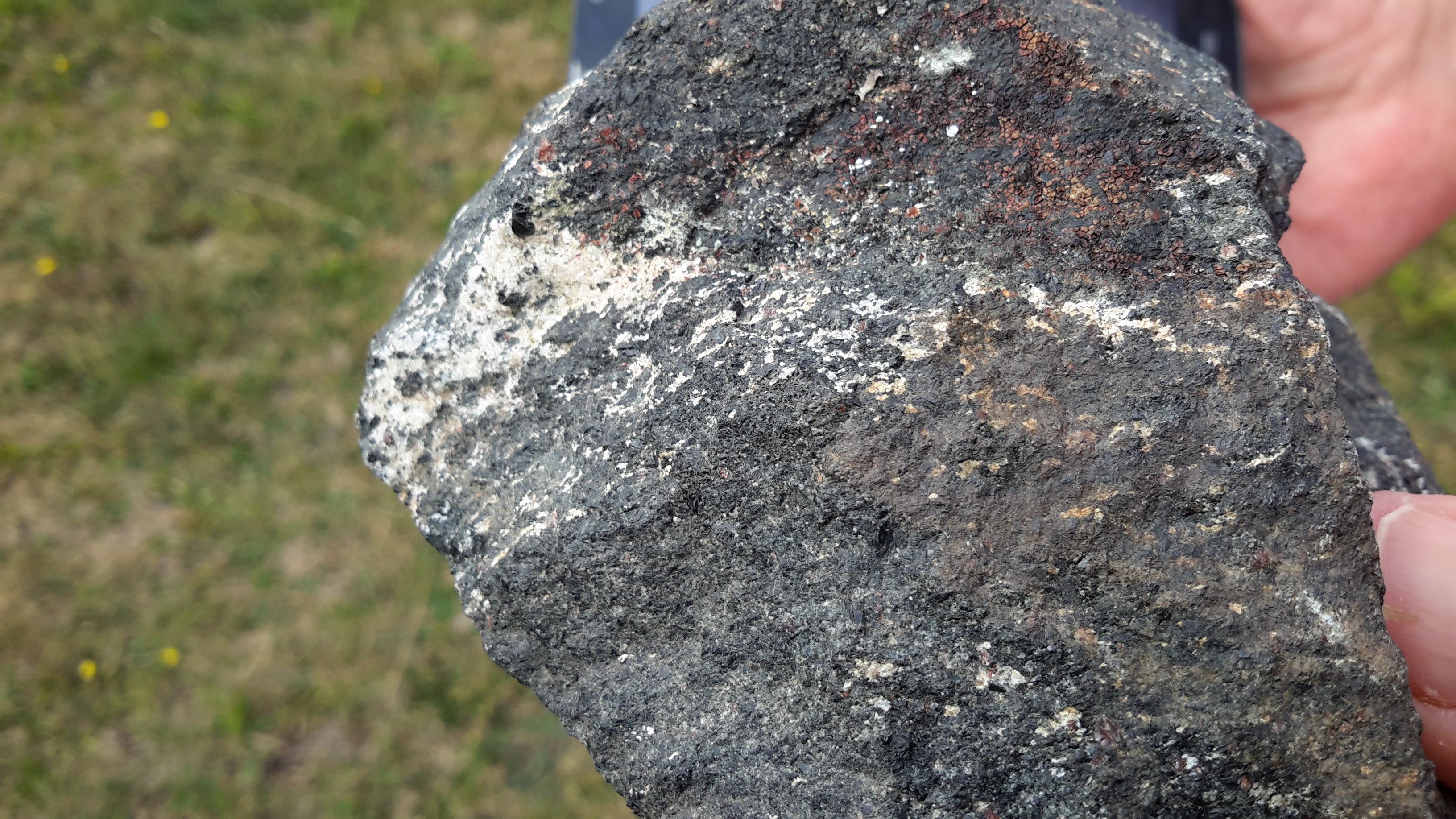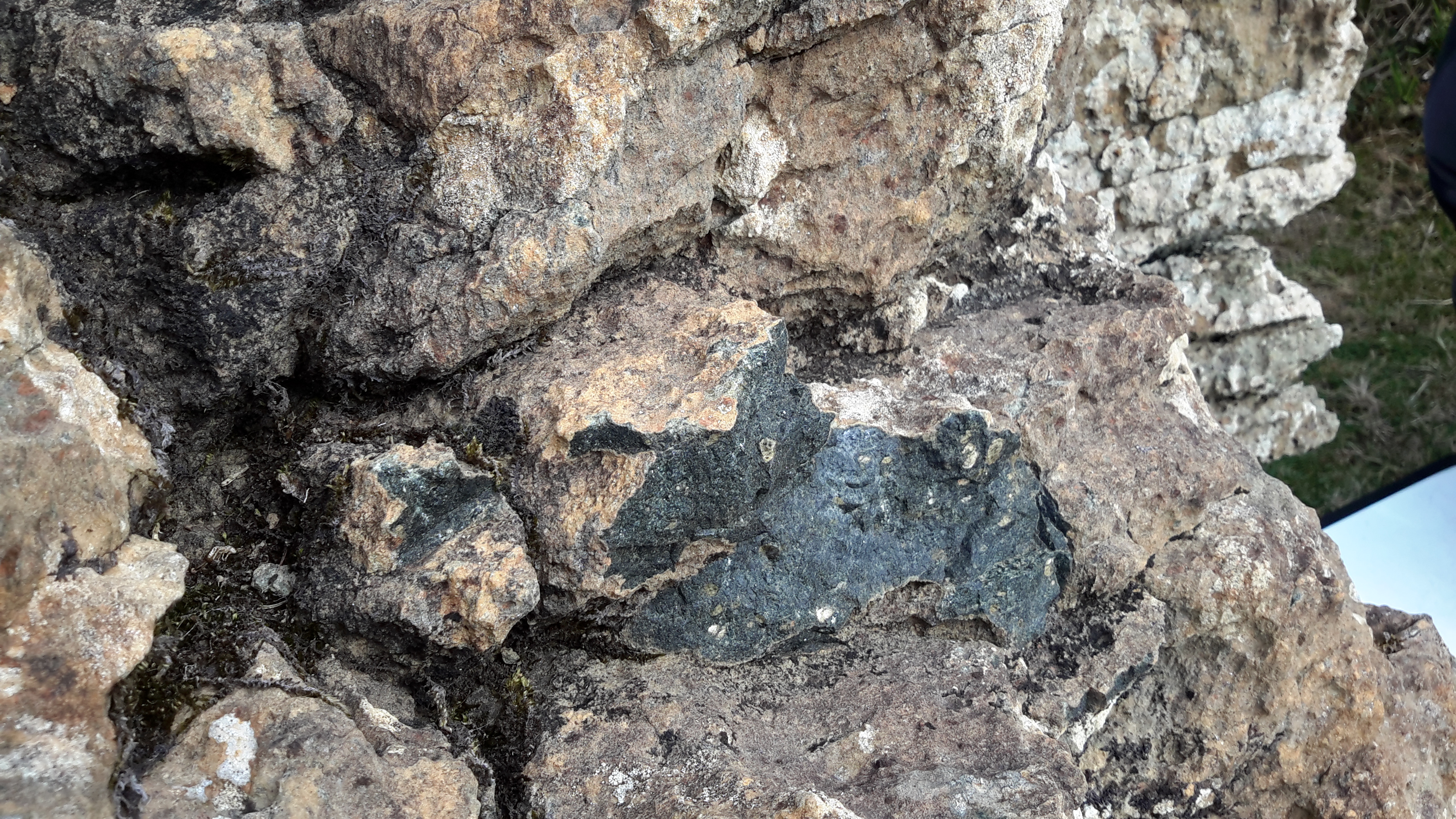 Gneis: inicialmente sedimentaria formada por sedimentos dun antigo océano que se pechou e que sufriu un proceso de sometemento a presión e temperatura elevadas dando lugar a unha rocha metamórfica.