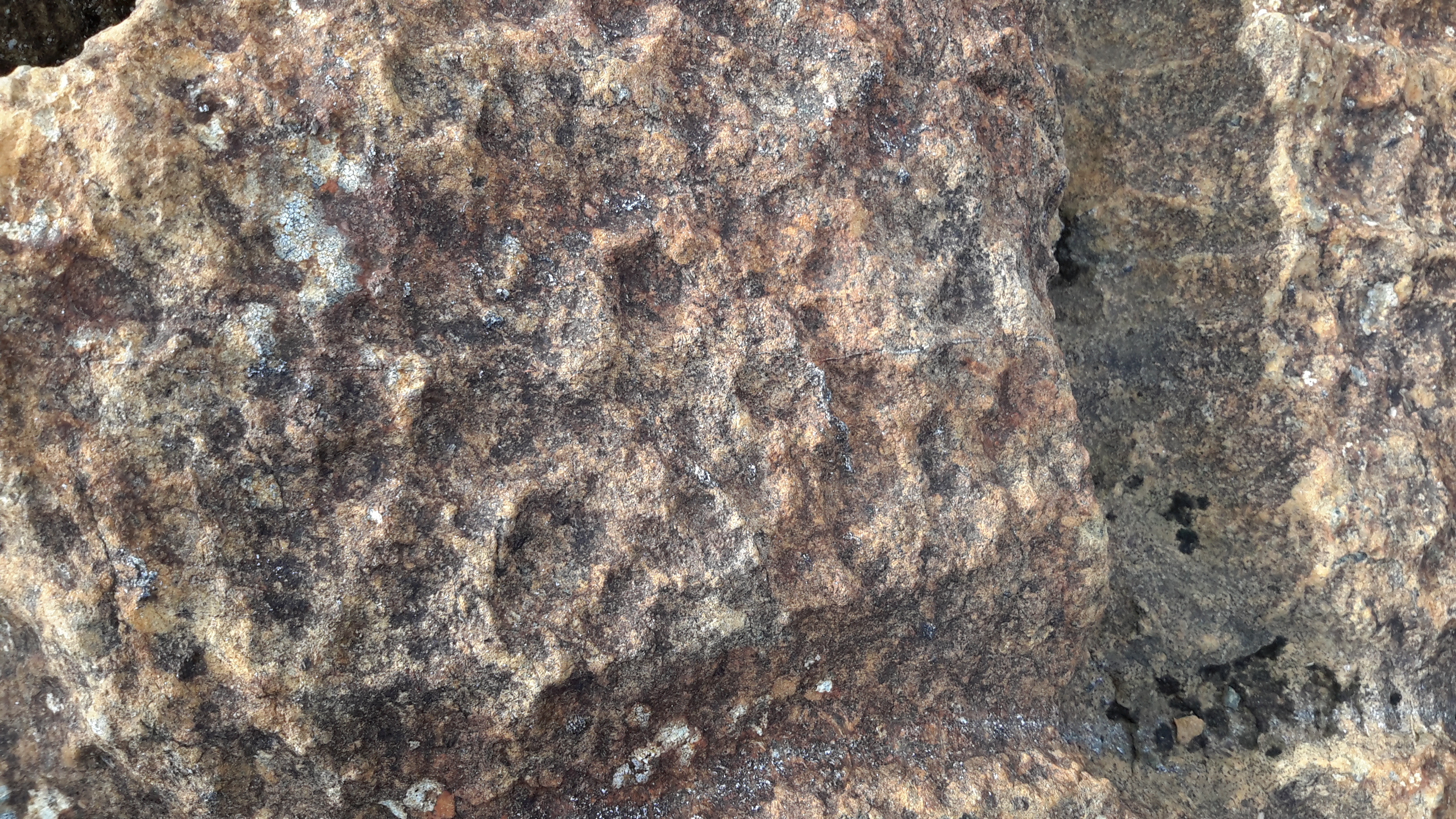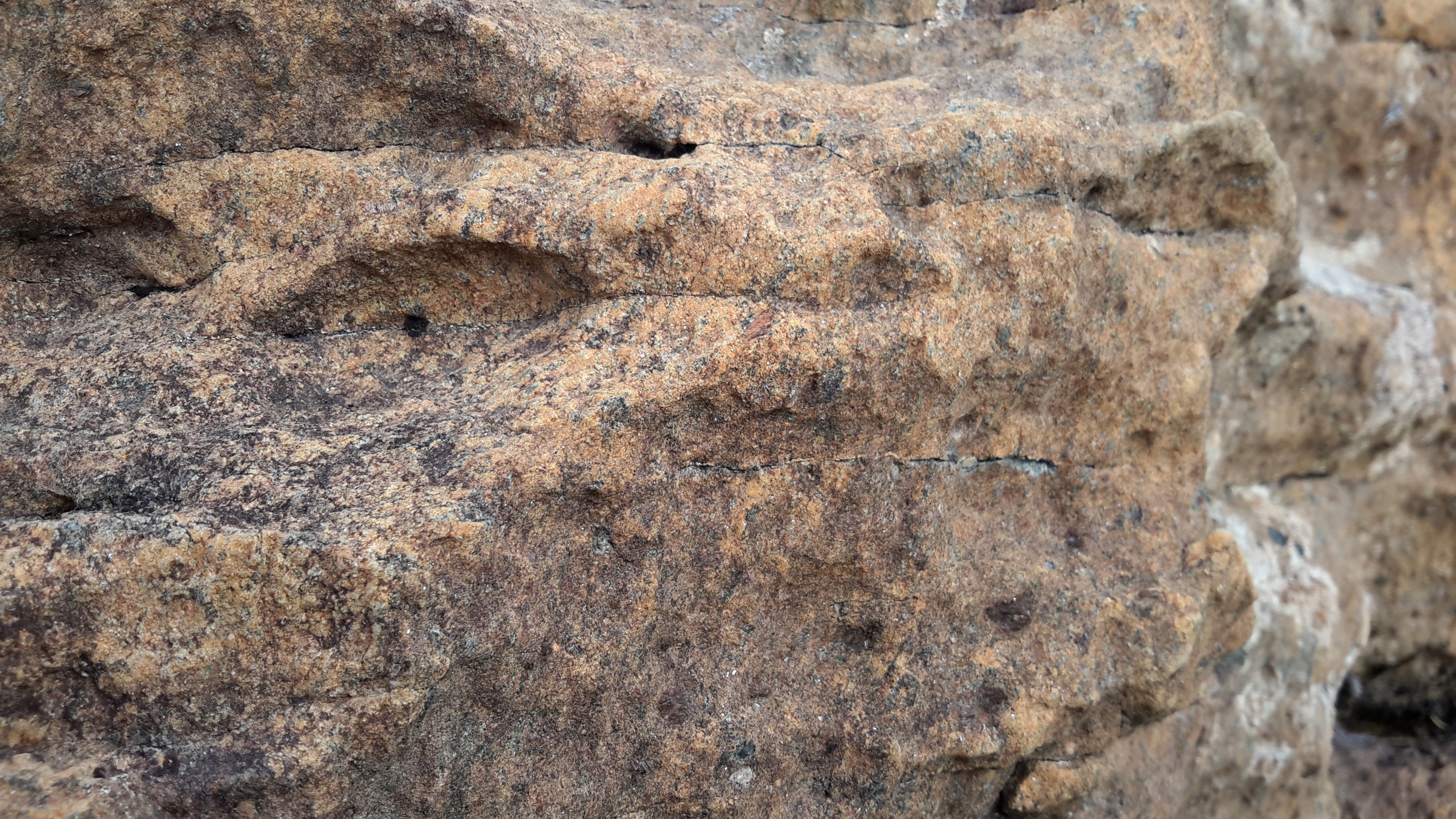 Na que se ven os ocos resultantes da erosión e perda dos grans de olivino.