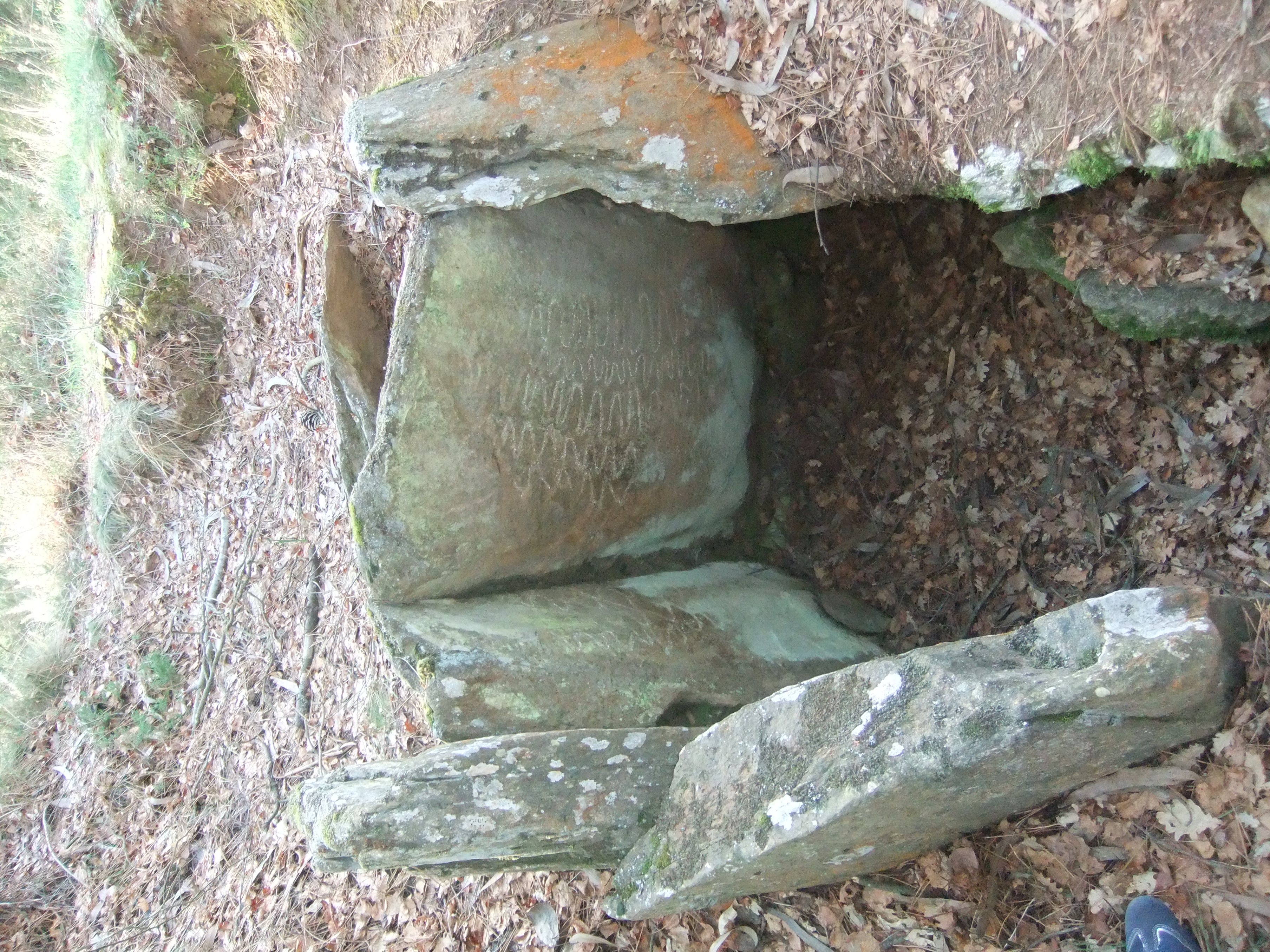 Na imaxe vense ata 10 pezas de pedra plana formando uha especie de círculo lítico adaptado a cerrar unha leira ou prado. A casa é unha casa de comidas en Crecente (Lugo) e contén ainda máis pedras planas xigantes nas terras próximas á casa