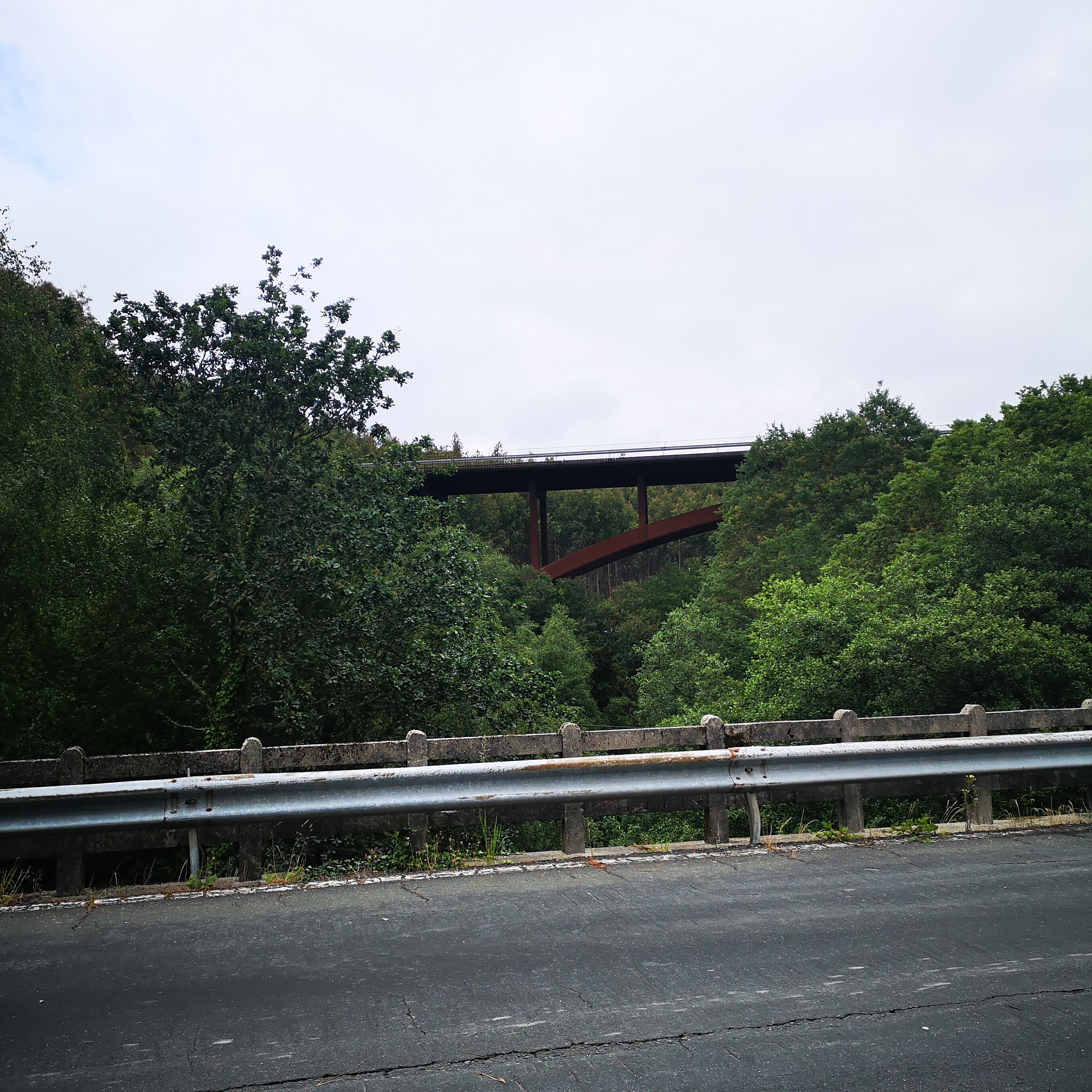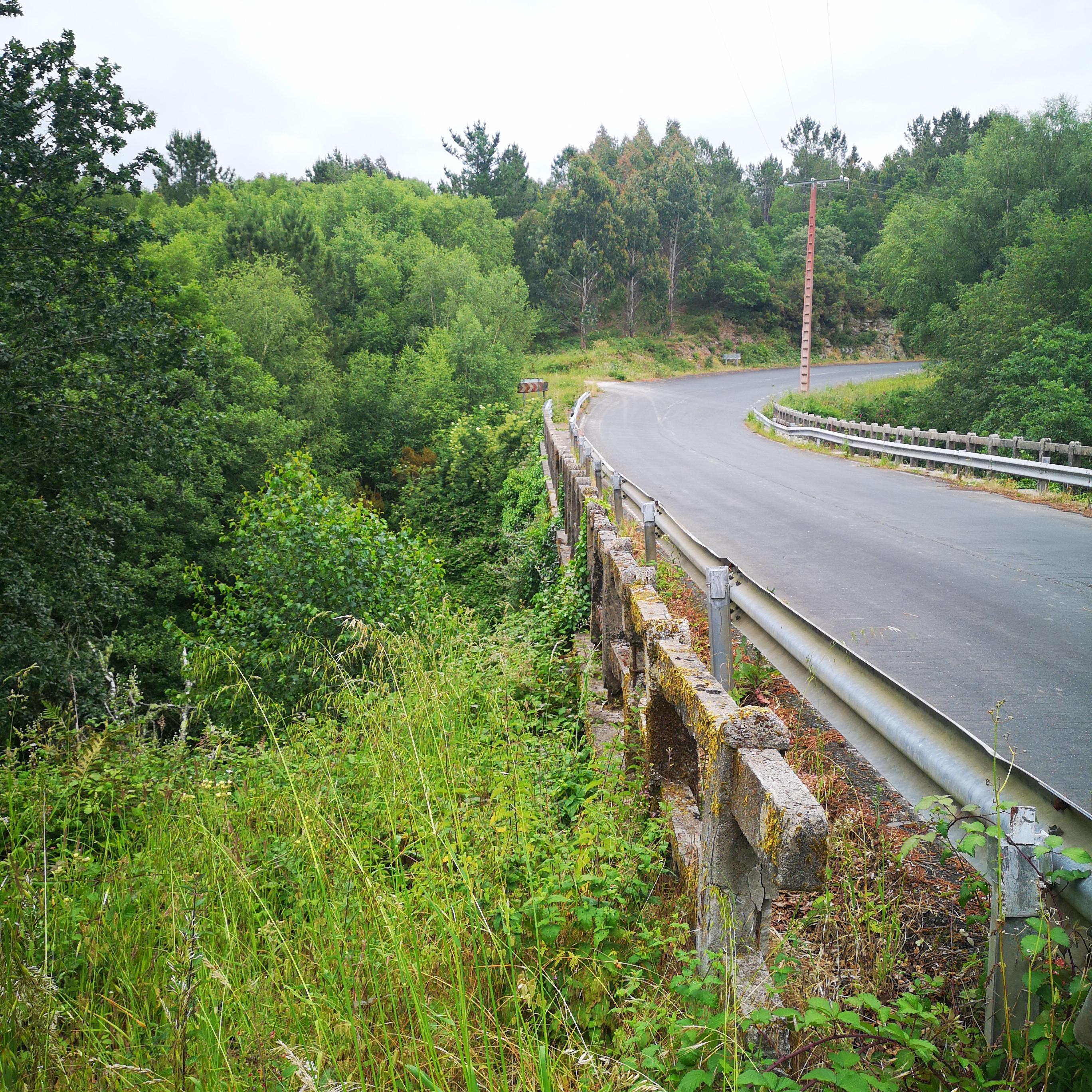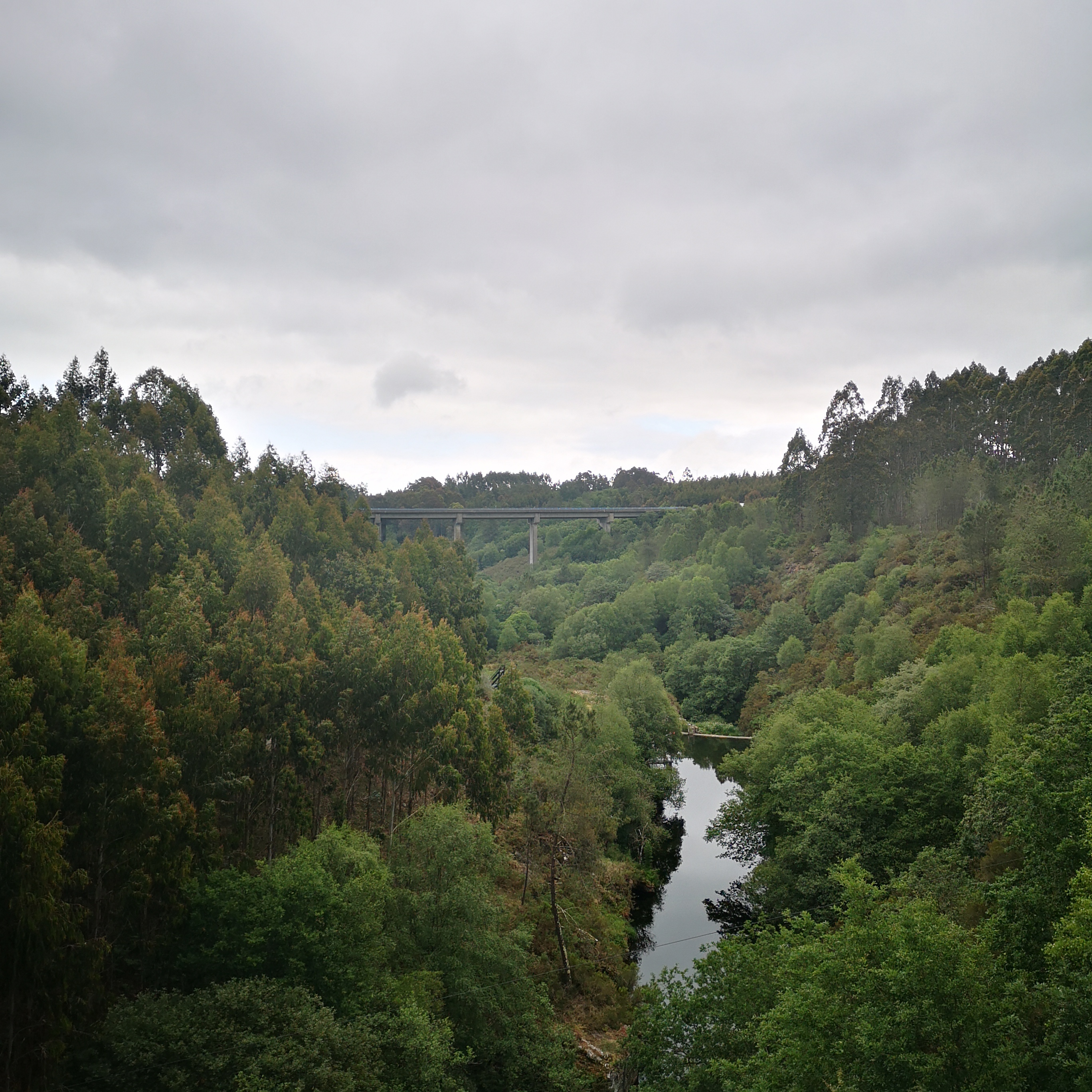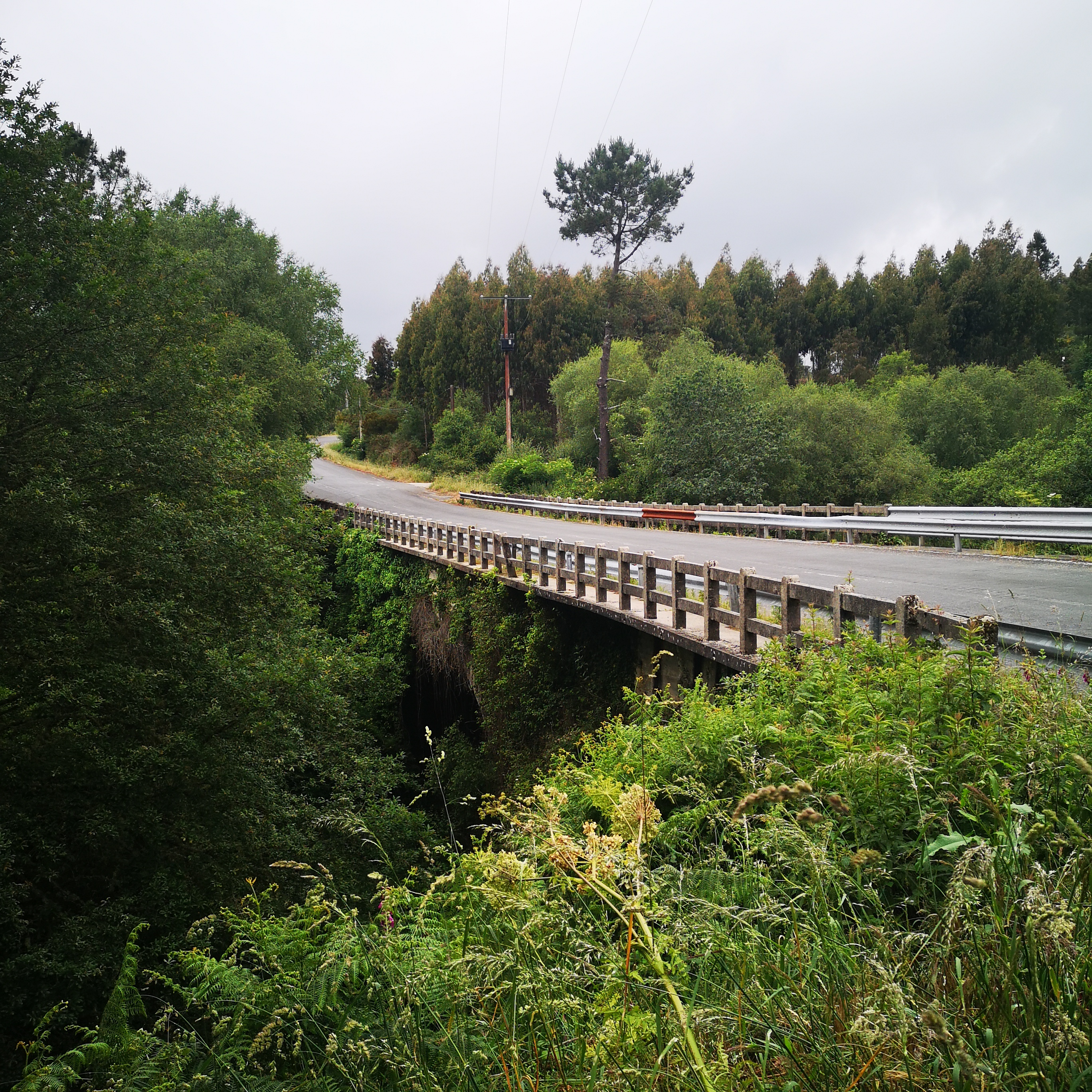En realidade hai tres pontes que cruzan o río Mandeo, a do século XVIII, máis abaixo, a dos anos 50, no medio e a ponte da A6, polas alturas. A mellora das estradas "linealizandoas"( aprovéitase así a inercia do coche) fai que cada vez sexan máis outas e longas as pontes. Non baixan e suben, continuan dun extremo ao outro.
