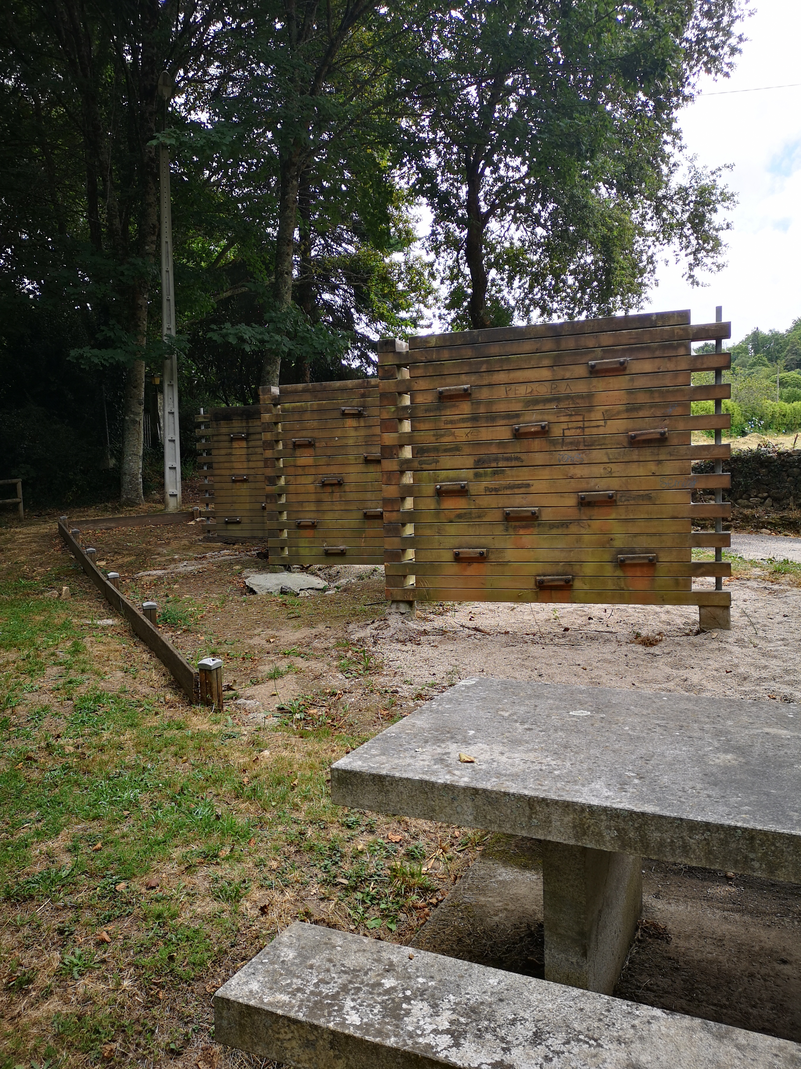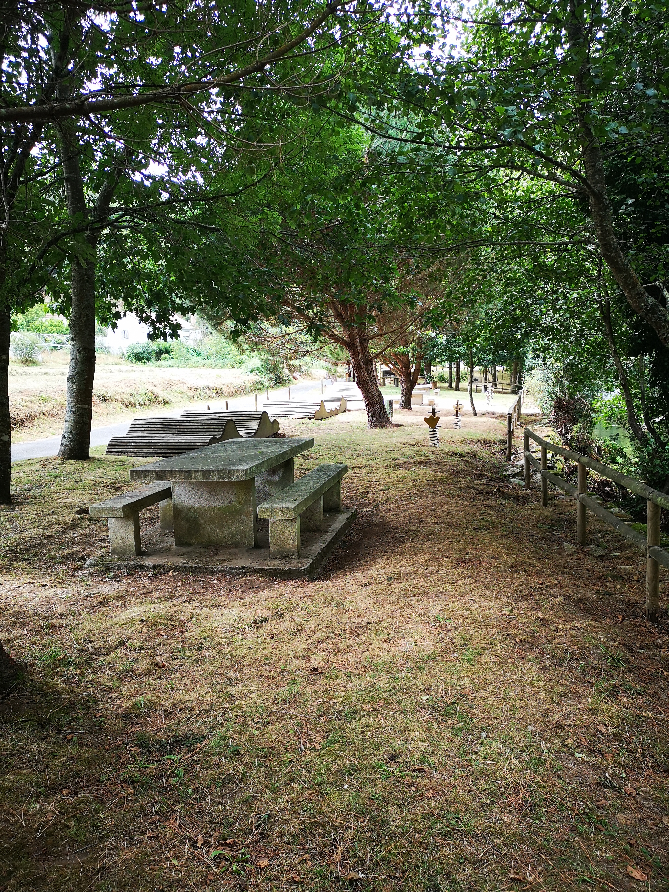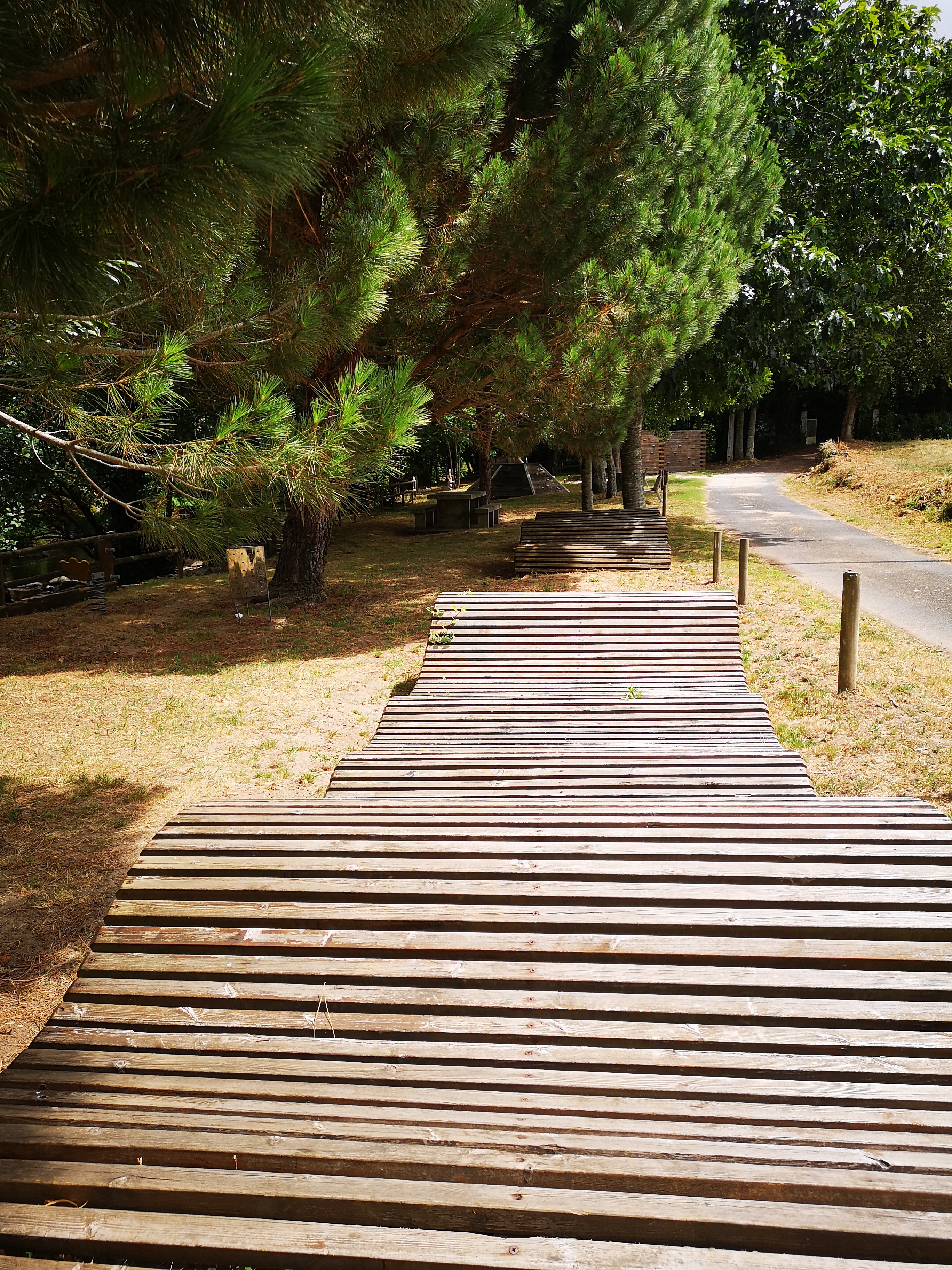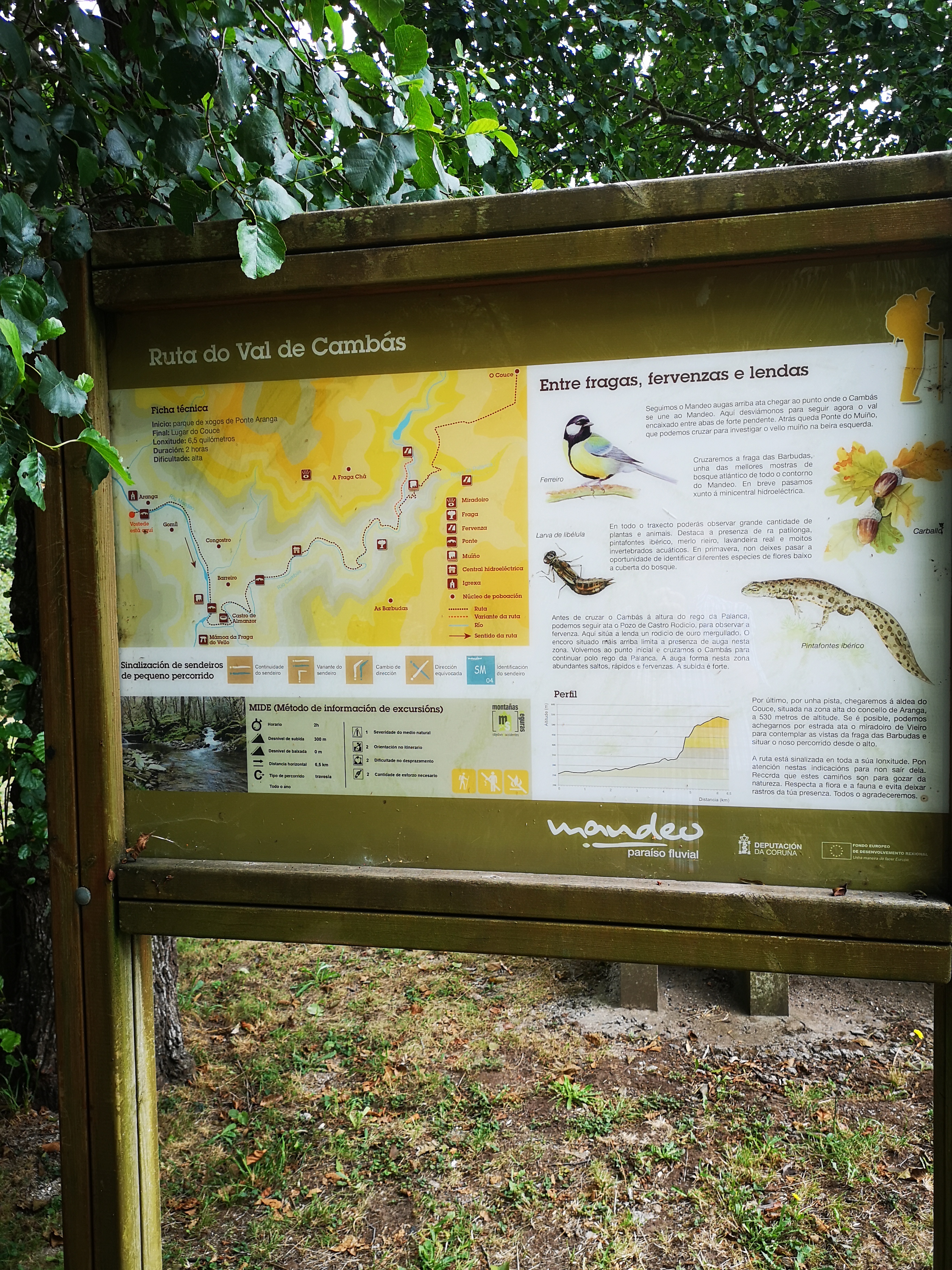En realidade hai tres pontes que cruzan o río Mandeo, a do século XVIII, máis abaixo, a dos anos 50, no medio e a ponte da A6, polas alturas. A mellora das estradas "linealizandoas"( aprovéitase así a inercia do coche) fai que cada vez sexan máis outas e longas as pontes. Non baixan e suben, continuan dun extremo ao outro.