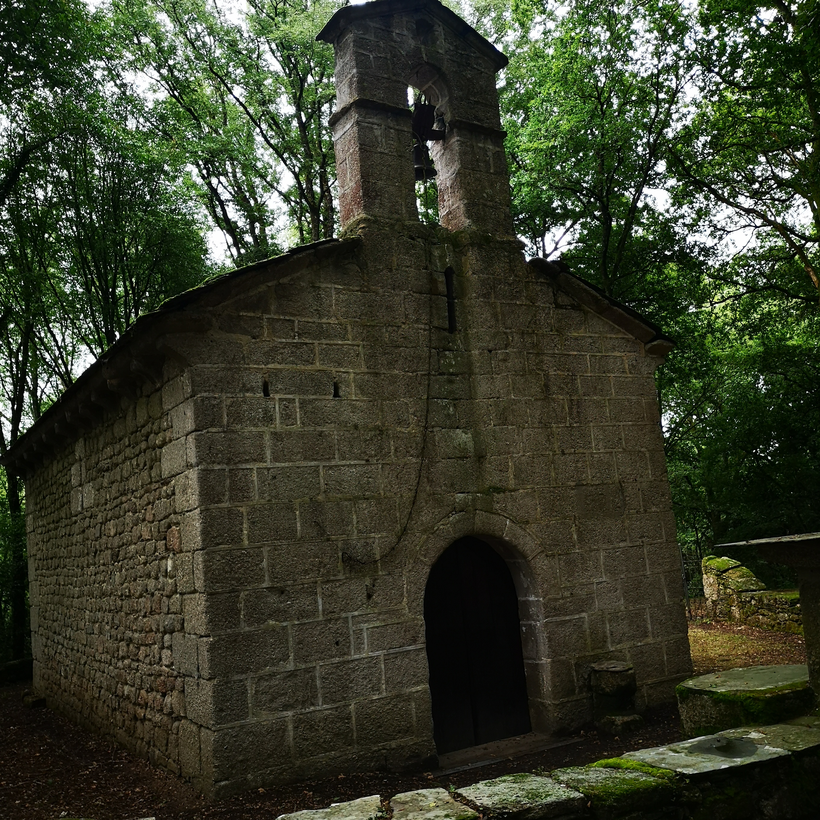 Unha capela 2x2 metros cun San Marcos no campanario que parece un deus celta posto alí. Un antigo santuaro celta reconvertido?